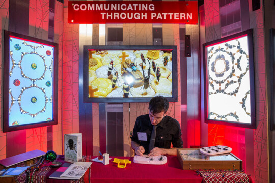 Alumni got a firsthand look at how the Wisconsin Idea is being put into action with six interactive learning stations. At one, Professor Francis Halzen of the physics department shared a glimpse into the origins of black holes, exploding stars, and other cosmic phenomena with the IceCube project. Another featured Forward under 40 award winners Gabriel Stulman ’03 and Jonny Hunter ’05, MPA’11, who discussed how their Wisconsin Experiences kicked off their culinary careers.